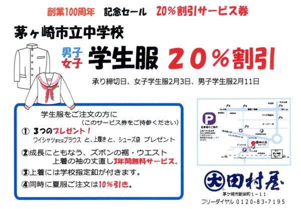 茅ヶ崎 田村屋 クーポン提示で 茅ヶ崎市立中学校学生服 割引いたします とことこ湘南